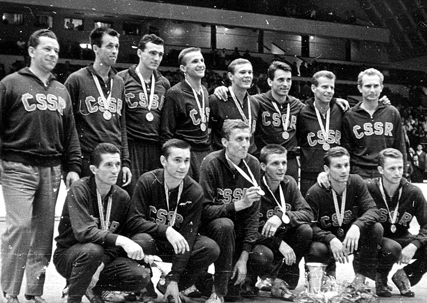 Na domácím světovém šampionátu v Praze v roce 1966 získali naši volejbalisté podruhé titul mistrů světa, když se jim podařilo porazit „Sbornou“ (3:2) . Na tu zbyly (po další prohře s Rumuny) jen bronzové medaile a naši si mohli dokonce dovolit prohru v posledním utkání s Japonci (2:3). Na snímku mistrů světa 1966 stojí zleva trenér Václav Matiášek, Šmídl, Petlák, Groessl, Mozr, Smolka, Musil a asistent trenéra Oldřich Kaplan, dole zleva Golian, Koudelka, Schenk, Kop, Labuda a Perušič.