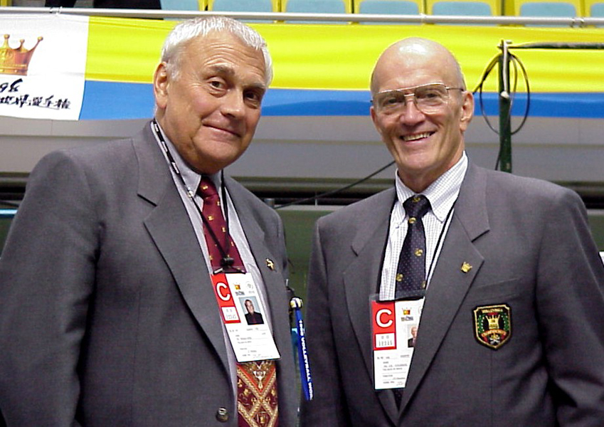 Snímek Míly Ejema s Jimem Colemanem je z roku 1989 a z MS mužů v Japonsku. Oba tam byli členy kontrolního výboru FIVB. J. Coleman byl na přelomu 70 - 80.let „duševním vůdcem“ skupiny trenérů USA, která vymyslela a prosadila příjem ve dvou hráčích a další inovace hry i přípravy. Měl obrovský podíl na tehdejším vzestupu úrovně volejbalu v USA. Byl také dlouholetým členem a sekretářem Komise pravidel FIVB (po našem doc .F. Stibitzovi) a autorem či spoluautorem řady doslova revolučních návrhů na změny pravidel (hra beze ztrát, hra nohou, utírání hrací plochy a další).