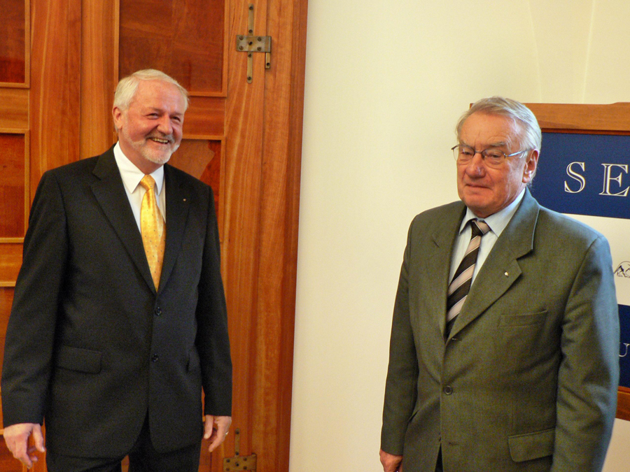 Druhý snímek je z roku 2008 a setkání svazových jubilantů v Senátu ČR, kde jubilantovi Ing. Vladimíru Kučerovi k 75. narozeninám pogratuloval jmenovec a tehdejší svazový předseda Ing. Pavel Kučera.