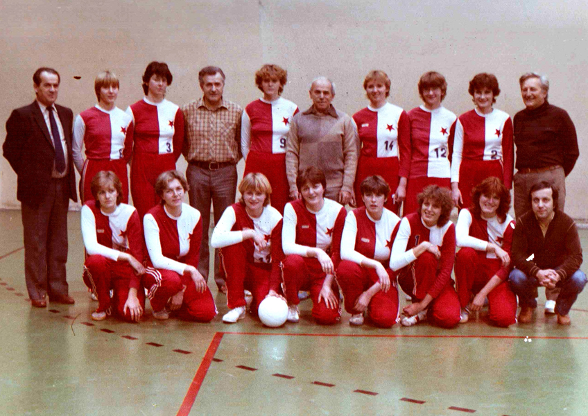 Na přelomu 60. a 70. let minulého století získaly hráčky Tatranu Střešovice pět mistrovských titulů za sebou (1969 - 1973), staly se hlavní zásobárnou reprezentace ČSSR, na domácí scéně byly takřka neporazitelné a věhlas získaly i za hranicemi opakovanou účastí a úspěchy v PMEZ, korunovanými dvojnásobnou finálovou účastí v letech 1971 a 1972. Na snímku z roku 1969 (?) stojí zleva trenér Antonín Kyndr, Kaliberková, Němečková, Vlasáková, Duroňová, Mifková a Václav Mikuláš (od roku 1954 předseda oddílu, manažer a vedoucí družstva), v podřepu zleva Šašková, Poláková-Moskalová, Svobodová, Obadálková a Kadeřávková. Z tehdejších opor na snímku chybí reprezentantky Tolarová, Hálková-Vápenková a Kaldová-Bardová.