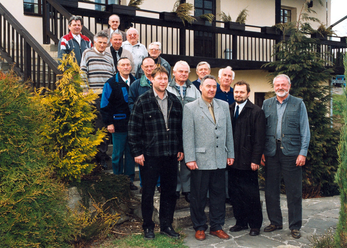 Snímek z výjezdního zasedání KSV ČVS v Hodslavicích v roce 2002. Na schodech odshora dolů a zleva doprava: Charvát a Krůta, Pavelka, Dluhoš, Cábal a Kryspín, Flíček, Šlechta, Dvořák, Kobliha, Vyoral a pod schody zleva Vašina, Vyhlídal, místní příznivec volejbalu - senátor a v současnosti člen NKÚ Ing. Pavel Hrčíř, a jako poslední tehdejší předseda svazu Ing. Pavel Kučera.
