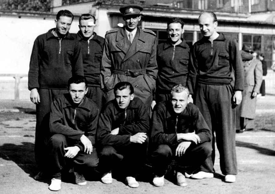 V roce 1948 narukoval na vojnu a stal se jedním z prvních hráčů nově ustaveného družstva volejbalistů ATK Praha. Na snímku stojí zleva Jaromír Paldus, Vladimír Spirit, vedoucí družstva kpt. Karel Vycpálek, Miloš Bouchal a Rudolf Taubman, dole zleva Radim Hrobař, Karel Brož a Zdeněk Neugebauer. Z prvního hráčského kádru ATK na snímku chybí Evžen Krob (pověřený trénováním družstva), Miroslav Hora a Arnošt Knězek.