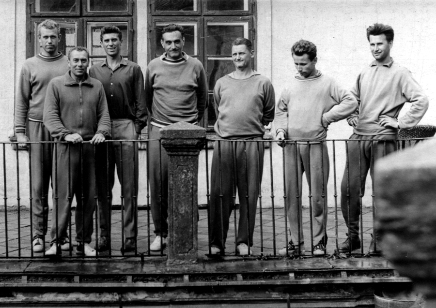 Na prvním snímku Alois Zyka (druhý zleva) při školení volejbalových trenérů v Lomnici u Tišnova v roce 1960. Pátý zleva Leopold Jebáček, legenda brněnského a čsl. volejbalu a světové proslulý rozhodčí.