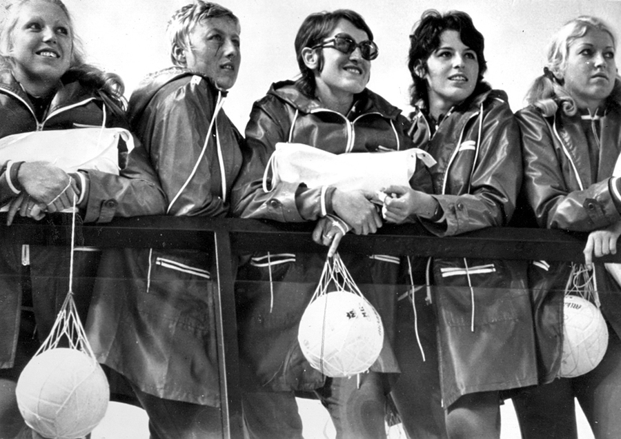 Zatím poslední účast našich volejbalistek na olympijském turnaji (OH 1972, Mnichov, 7. místo) připomíná snímek pětice našich reprezentantek při prohlídce města v době volna. Zleva Irena Svobodová, Anna Mifková, Elena Moskalová, Dora Jelínková a Mária Mališová.