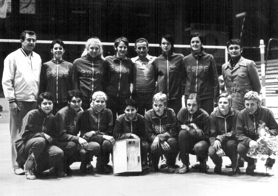 Na snímku kompletní tým ČSSR před ME 1975, na kterém se za „propadák“ v Mexiku rehabilitoval 5. místem. Zleva stojí trenér Richard Bönisch, Bartošová, Součková, Hübnerová, Vandráková, Moulisová a asistent trenéra Václav Raban, dole zleva Klímová, Fabikovičová, Moskalová, Svobodová, Pařízková, Mifková a Vlasáková. Na ME trenéři místo Jitky Bartošové nominovali Darinu Kodajovou z Bratislavy a věřme, že nejen proto, aby mělo Slovensko ve výběru alespoň jednoho zástupce.