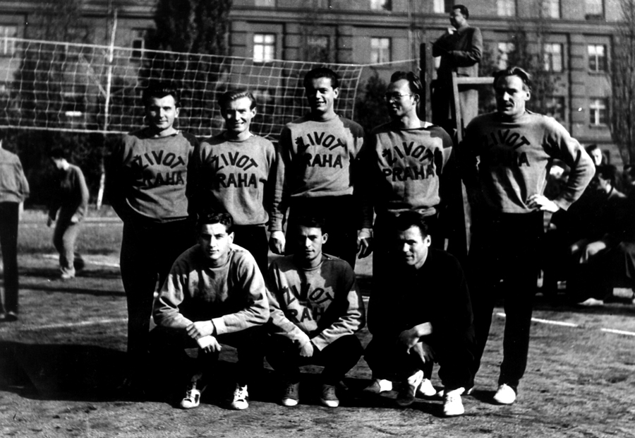 V roce 1947 vybojovali volejbalisté SSK Život titul mistrů republiky, v roce následujícím byli v rámci tzv. sjednocení tělovýchovy pod Sokolem (ČOS) převedení do Sokola Michle. I nadále však oblékali dres s nápisem „Život“, jak dokládá snímek z roku 1948. Zleva stojí Jiří Fiedler, Oldřich Venhač, Josef Brož, Miloslav Humhal a Josef Malý, dole zleva Jiří Kučera, Antonín Hubáček a Tomáš Pomr. Dodejme, že Josef Malý alias „Pipek“ (zkušený hráč AFK Waldes a SK Slavie) v družstvu nahradil na postu smečaře Karla Brože, povolaného na vojnu do ATK Praha.