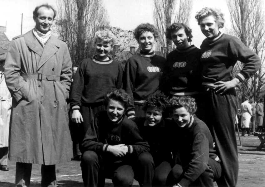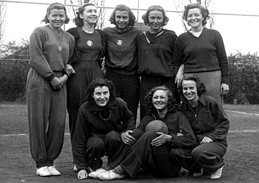 Velice silné družstvo žen vzniklo v roce 1949 při Sokole Pražském a získalo dva mistrovské tituly za sebou (1949 v Ostravě, 1950 v Jilemnici), první rok pod vedením Jindřicha Štěpánka, druhý s trenérem Karlem Brožem. Na snímku z Jilemnice 1950 sedí nahoře zleva Zaplatílková a Stibitzová, v prostřední řadě Trpišovská, Hauerová-Tesařová a Kalinová a v dolní řadě trenér Karel Brož, Mirovická-Mathauserová, Hroudová-Brožová (v tomto roce se za svého trenéra provdala) a Sadková.
