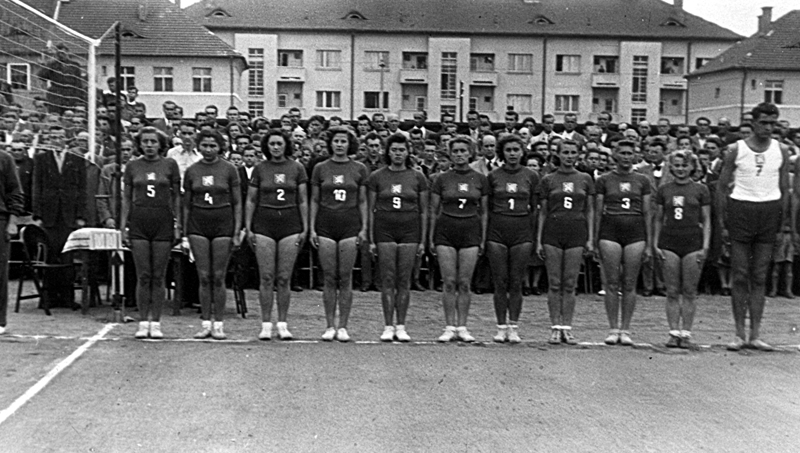 Na I. ME žen v Praze roku 1949 vybojovaly naše ženy stříbrné medaile ve složení (stojící zleva): Bernovská, Batková, Cígrová, trenér Miroslav Rovný, Hroudová, Čadilová a Cvilinková, v podřepu zleva Krimlová, Zaplatílková, Marynčáková, Valášková a Mirovická. Na snímku už chybí dvanáctá nominovaná hráčka Broňa Dostálová, která byla hned na začátku šampionátu vyloučena z družstva pro kuriózní kázeňský přestupek: byla přistižena, jak v době volna fandí „kapitalistům“ z Itálie při jejich nerovném souboji s „bratry“ Sověty !