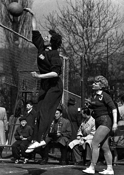 V roce 1949 byla v Kolíně sehrána mezistátní utkání mužů a žen ČSR - Maďarsko. Naše ženy k utkání nastoupily v sestavě (zleva): Cígrová, Dostálová, Straková, Slavíková, Lútočková, Šerá, Hroudová, Batková, Biskupová a Burianová. Ve výběru mužů jako první Tesař a výškový rozdíl mezi našim největším volejbalistou (198 cm) a nejmenší volejbalistkou Soňou Burianovou (160 cm) je skutečně kuriózní.