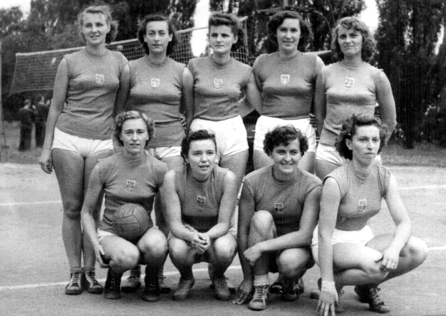 Nejcennější ve sbírce trofejí A. Č. se stalo stříbro z prvního ME 1949 v Praze na Štvanici. Na snímku s prezidentem Klementem Gottwaldem (přítomným alespoň na obřím plakátu) stojí zleva Batková-Holá, Cígrová-Donthová, Čadilová, trenér „Miro“ Rovný z Bratislavy, Hroudová-Brožová, Valášková a Marynčáková, dole zleva jediná Slovenka Bernovská, Cvilinková-Hajtmarová, Mirovická-Mathauserová, Zaplatílková-Jílková a Krimlová. Chybí Broňa Dostálová-Hrbková, vyloučená za hrubý kázeňský přestupek (fandila Belgičanům při jejich nerovném souboji ve skupině se Sověty).