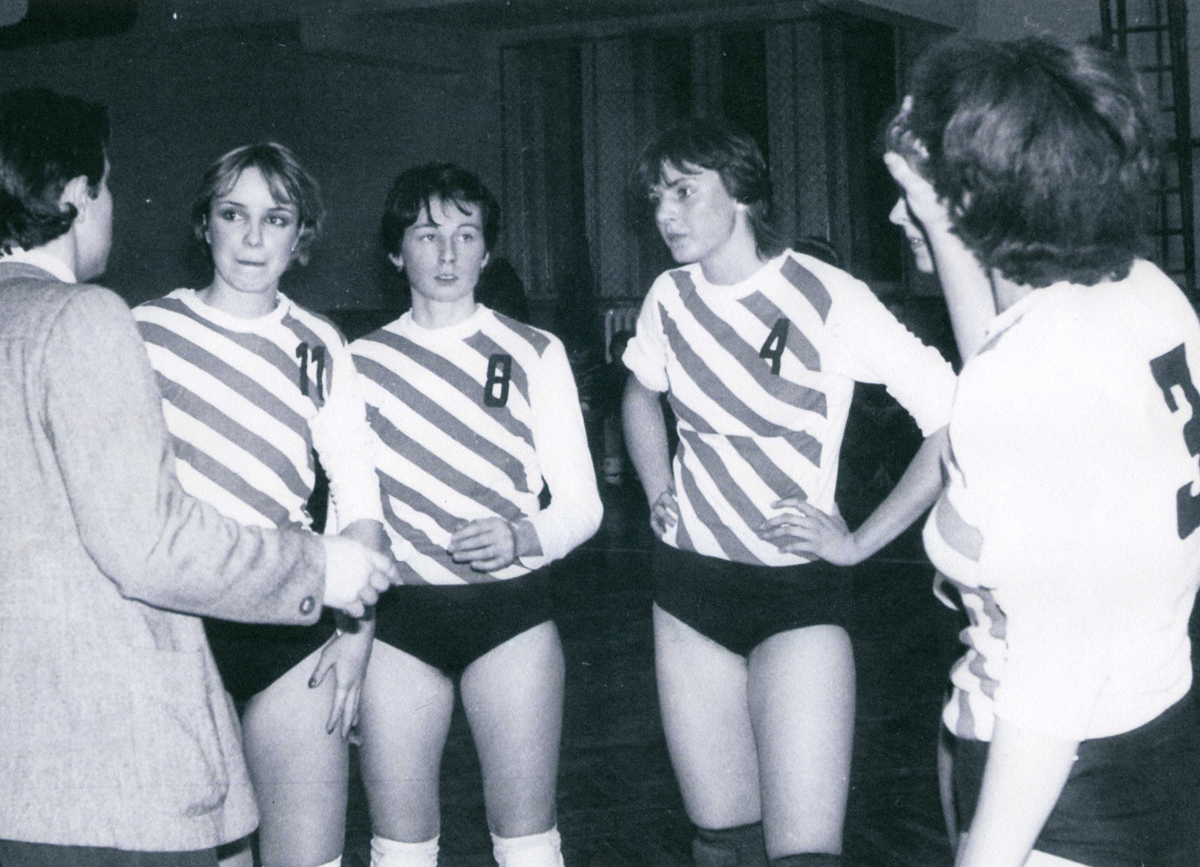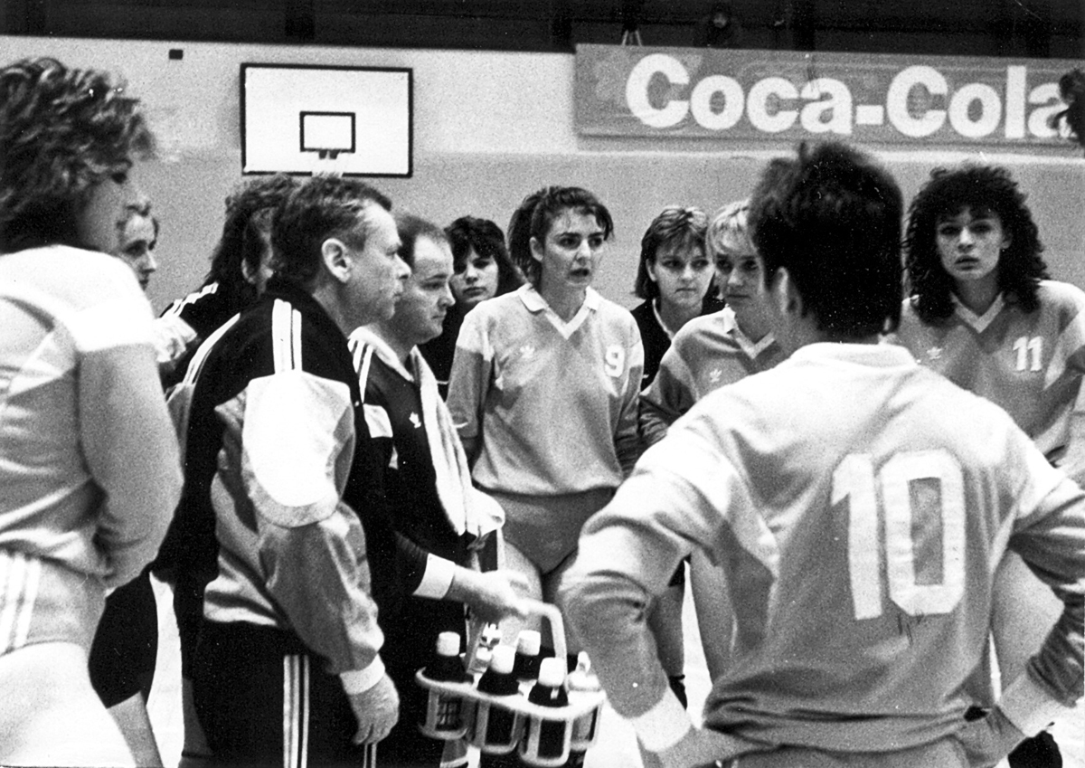 Záběr z mezinárodního turnaje o Pohár Osvobození v Brně roku 1989 a na něm rovněž při oddechovém času hráčky KPS kolem trenéra Milana Kafky. Ve světlých dresech odleva Kuchariková-Janáčková, Leona Goldemundová (9), Ilona Veselá, Romana Kumpochová-Jedličková (10) a Jana Němcová-Jurášová (11).