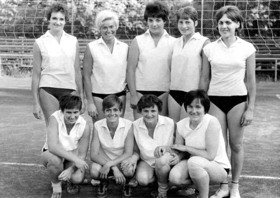 Další snímek je ze srpna 1968 a na něm část žen Slavoje Praha při turnaji v sicilském Palermu. V době jejích zájezdu do Itálie se reprezentantky Senecká, Široká a Štruncová připravovaly s trenérem M. Máchou na mexickou olympiádu. Naďa se účasti na OH a další reprezentace již vzdala a odjela se zbytkem hráček Slavoje a „záložním“ trenérem Zdeňkem Zlatníkem na Sicílii. Vrátili se do Prahy obsazené sovětskými tanky. Zleva stojí Smíšková-Pletichová, Hlaváčková, Ursínyová a Lútočková, v podřepu zleva Marta Štefková, Novotná, Pražanová a Tolarová.