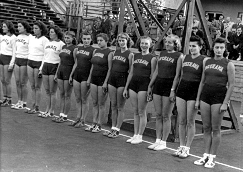 Z roku 1948 je i snímek z mezinárodního turnaje ve Varšavě, kam s sebou Ostravanky vzaly dvě posily v podobě reprezentantek Cvilinkové z Brna a Cígrové z Prostějova. Obě tyto hráčky do Ostravy později přestoupily a podílely se na zisku dalších tří mistrovských titulů. Zleva: Kaločová, Štěpničková, Marynčáková, Štěpánková, Cvilinková, Cígrová, Krimlová, Valášková.