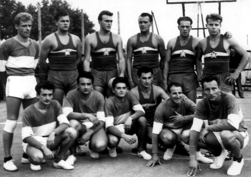 Finále mistrovství republiky mužů i žen v roce 1950 se konalo v nádherném přírodním prostředí krkonošské Jilemnice. Muži Dynama Slavie Praha obsadili 3. místo za ATK a Spartou Praha v sestavě (nahoře zleva): Holzhauser, Soukup, Těšitel, Mikota, Koman, Hrobař a dole zleva: Laštovka, Selichar, Venhač a Taubmann.