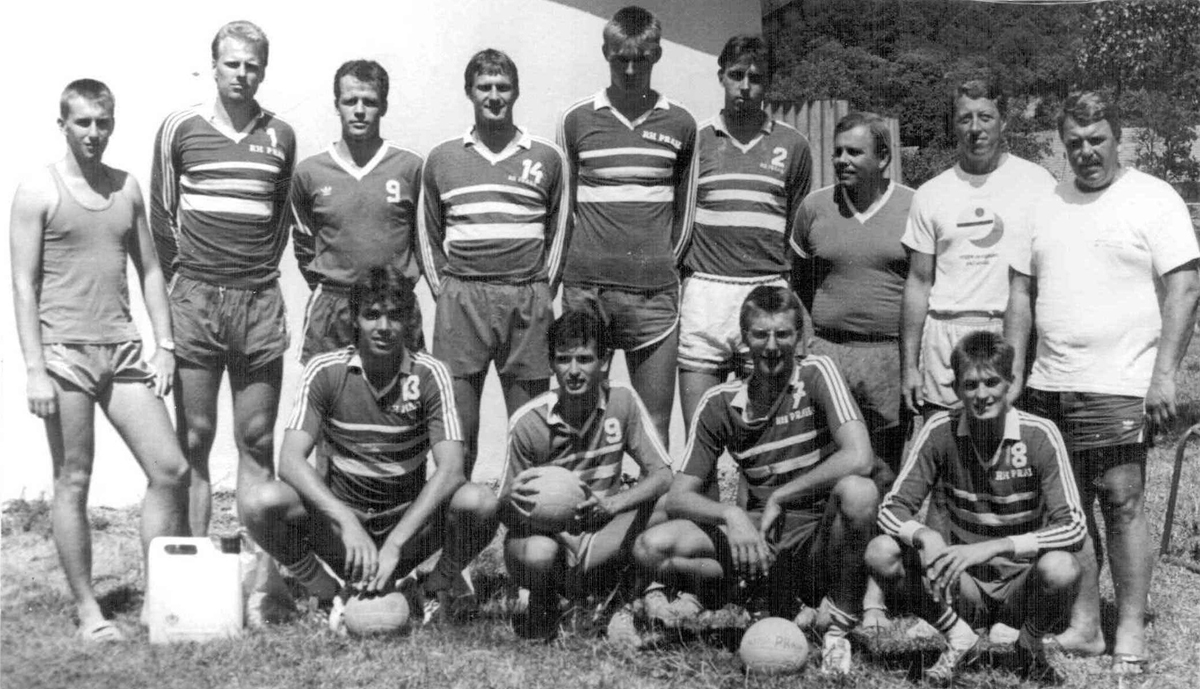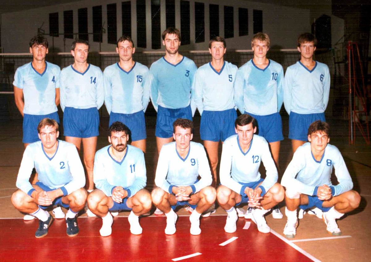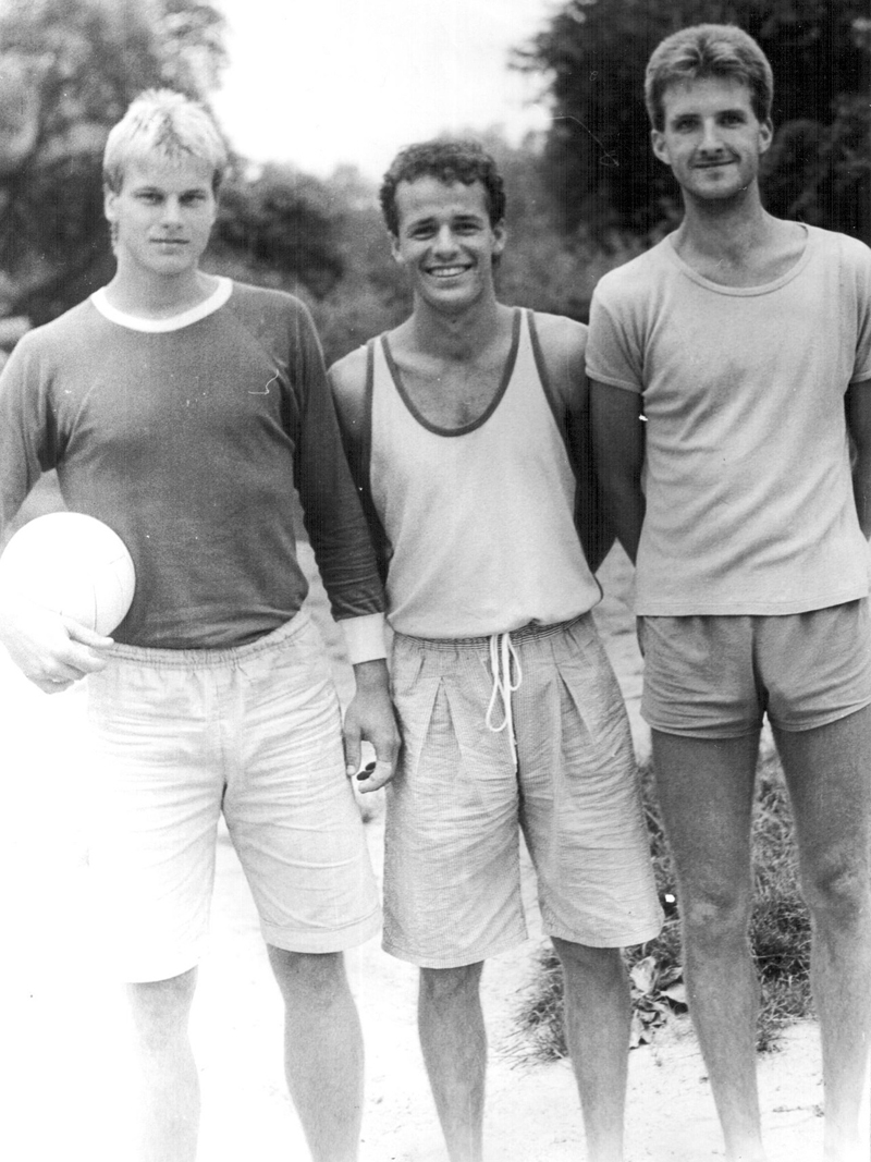 První beachvolejbalový úspěch na mezinárodním poli získala v roce 1989 brněnská trojice (zleva) Igor Stejskal (Bača), Michal Palinek (Palda) a Dušan Zajíček (Zajda) na turnaji v italské Raveně. Na turnaji trojic skončili na 2. místě za domácími hráči.