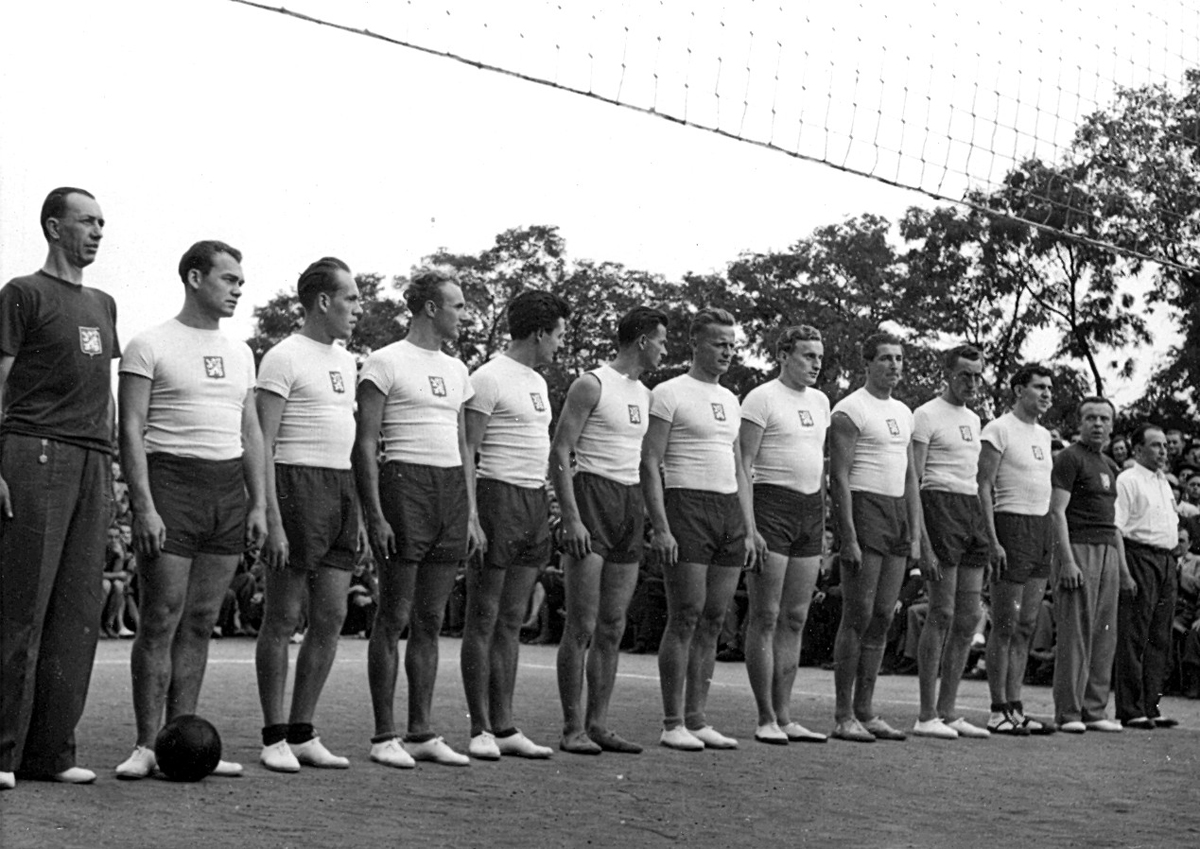 Mistry republiky v letech 1948 a 1949 se stali volejbalisté Sokola Kolín. Na snímku z bratislavského finále MR 1948 nahoře zleva: Reicho, Kunte, Novotný, vedoucí družstva Jaroslav Fučík senior, Růžička, Vokál, Tesař a dole zleva: Linke, Fučík, Synek.