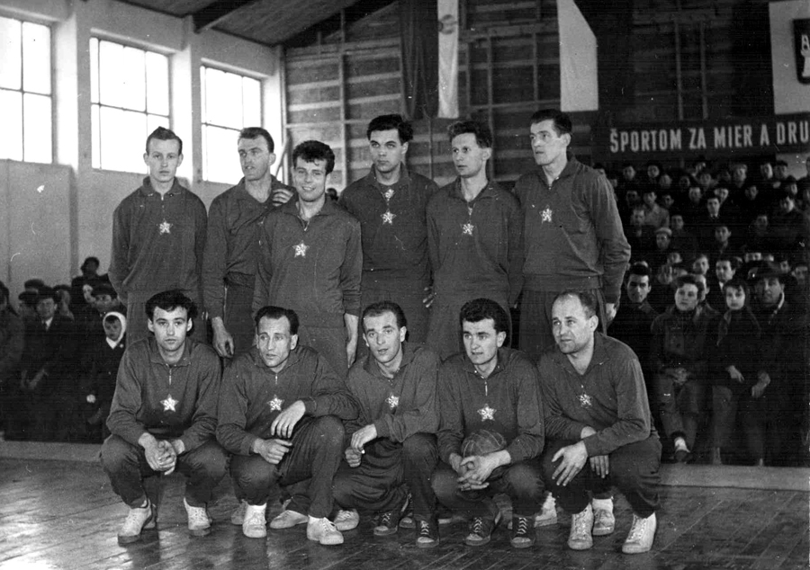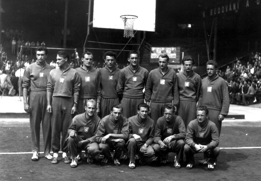 V roce 1950 se konal v Praze 2. kongres Mezinárodního svazu studentstva, doprovázený kulturními a sportovními akcemi. Naši volejbalisté vyhráli turnaj na Štvanici před Rumuny, Poláky a Číňany. Na snímku zleva stojí bratři Rozholdové z Bratislavy, Horáček Václav, Šavrda, Jílek, Růžička, Schwarzkopf a Votava, dole zleva Jonáš, Liška, Müller, Malý Zdeněk a Balun.
