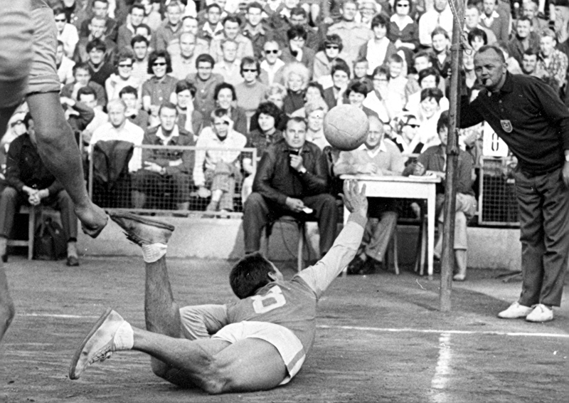 Úspěšná „rybička“ Josefa Smolky je z utkání Dukly Kolín s volejbalisty Japonska (1:3), kteří v rámci evropského turné před OH 1964 v Tokiu sehrálo i u nás několik přípravných utkání. Zápas byl sehrán v novém areálu „Na Kalcovce“ za přítomnosti 4 tisíců diváků.