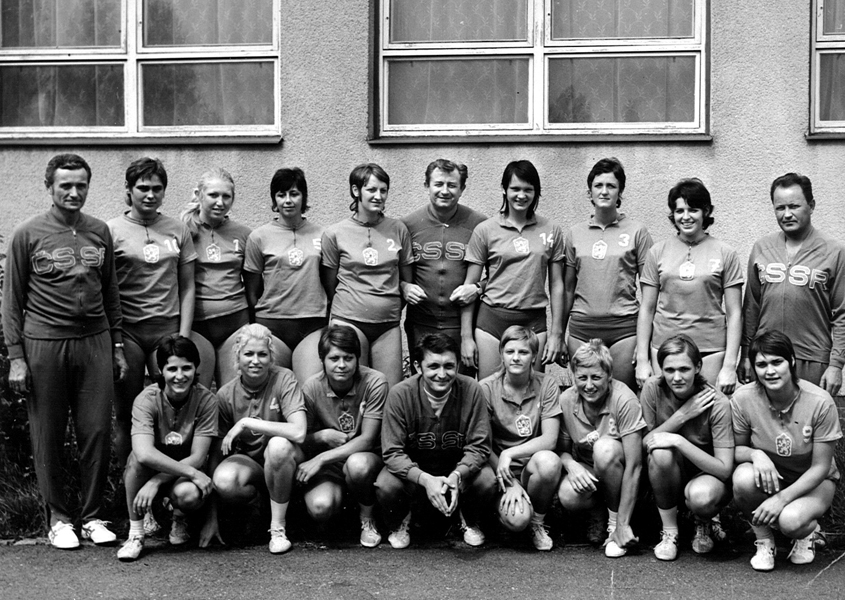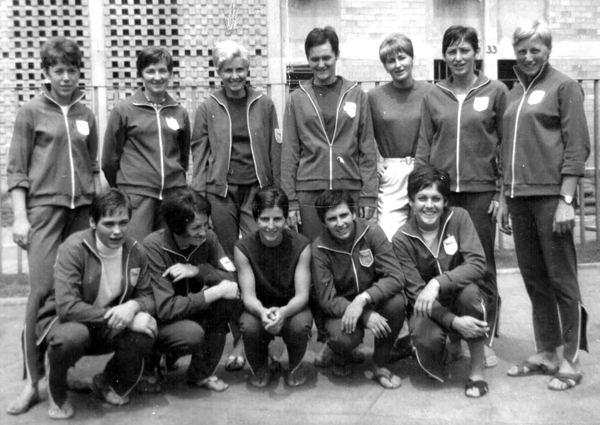 Naše volejbalistky startovaly i na OH 1972 v Mnichově, kde si o jedno místo pohoršily (7. místo). Snímek je z přípravy na olympijský turnaj a stojí na něm zleva vedoucí družstva Zdeněk Jílek, Vlasáková, Svobodová, Vindušková, Moskalová, trenér Šneberger, Moulisová, Baniová, Jelínková a lékař dr. Veselý, dole zleva Mazurová, Mališová, Semecká, as. trenéra Židišin, Kodajová, Mifková, Hádková a Hálková-Vápenková. „Černého Petra“ si tentokrát vytáhly a do Mnichova nejely Baniová s Hádkovou.