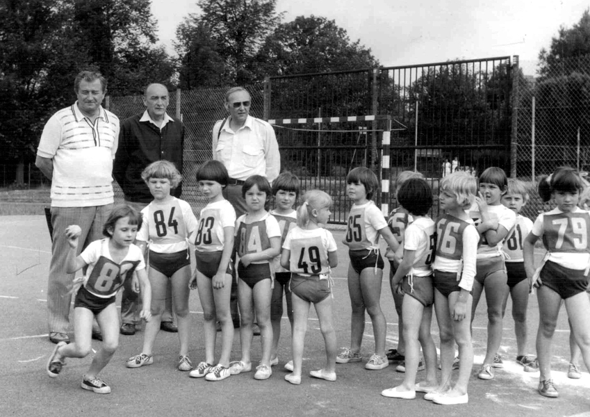 Symbolický snímek S. Š. (první zleva) s volejbalovým „potěrem“ je z počátku 80. let a z testování pohybových schopností adeptek volejbalu. Záslužné práci s nejmenšími věnoval Standa posledních 10 let svých trenérských aktivit (1998 - 2007).