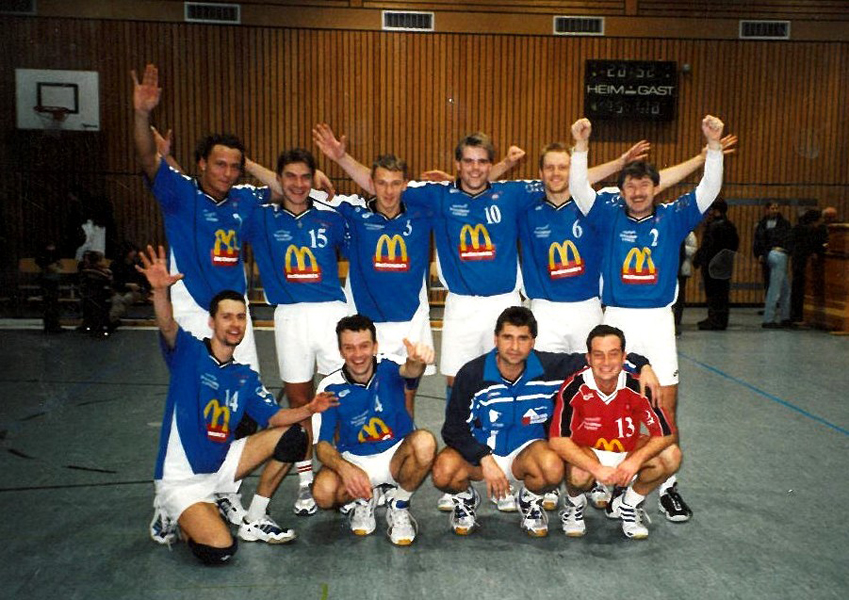 S hráčskou kariérou se Ivan (v podřepu druhý zprava) rozloučil v sezoně 2003/2004 v roli hrajícího trenéra TSB Ravensburg v německé Oberlize (obdoba našeho KP).