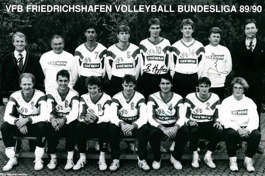 Další snímek je již z německého angažmá u prvoligového VfB Friedrichshafen a sezony 1989/90. Ivan (dolní řada č. 4) se zde sešel s Jirkou Rybníčkem (horní řada č. 5) a Igorem Prieložným v roli trenéra (stojí jako první vpravo).