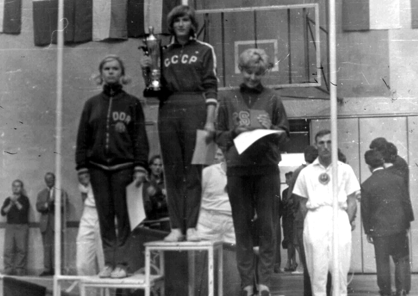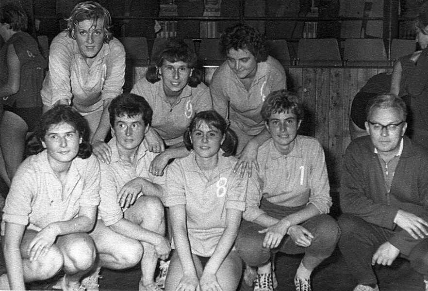 V roce 1967 si zahrála poprvé na vrcholné soutěži a z ME v Turecku si přivezla bronzovou medaili. Na snímku žen ČSSR stojí zleva Poláková, Hrabáková, Pražanová, Šašková, Široká, Hrádková a Štefková, dole zleva Štruncová, Rehbergerová, Mazurová, Senecká a Bendeová. Trenéry našeho družstva byli Metoděj Mícha a Stanislav Šneberger.