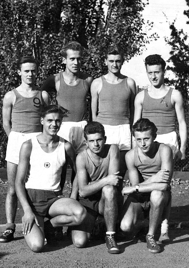 Dorostenci Sokola Dynamo Slavia v roce 1951, ve kterém na otevřeném Mistrovství Prahy (předchůdci Velké ceny) porazili ve finále přeborníky republiky ze Sokola Bílá Třemešná v čele s Paulusem a Šormem. Dole první zleva Milan Purnoch, další začínající hvězda našeho volejbalu.