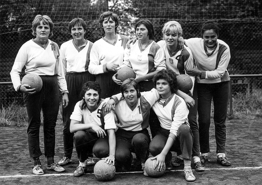 Na snímku z roku 1959 je družstvo Slavoje Praha (mistryň republiky 1957), které pod vedením reprezentačního trenéra Metoděje Máchy skončilo v tomto ligovém ročníku na 2. místě za Dynamem Praha. Zleva stojí Holá, Kolínská, Břízová, Lútočková, Křížová, Štefflová a Jílková, dole zleva Tolarová, Prokešová, Šmardová a Ursínyová.