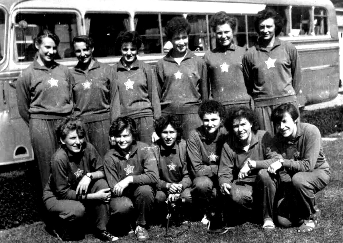 V roce 1967 se v Plzni uskutečnilo první setkání bývalých reprezentantek z let 1956 - 1960. Řada hráček ještě hrála 1. ligu a tak se součástí srazu stalo veřejné a velice kvalitní utkání dvou vylosovaných šestek, koučovaných trenéry Češpivou a Kyndrem. Na snímku stojí první tým: Křížová-Kopová, Štefflová-Mikulecká, Kyselková-Herštová, Vacková-Synovcová, v civilu Svatava Vráželová (po úrazu s nohou v sádře), Šormová, Obadálková a Špelinová. V podřepu druhý tým, zleva: Moravcová, Šindelářová-Tolarová, Langová-Froňková, Uhrínová-Balková, Ulmonová-Benešová a Holubová. V prosinci tohoto roku Svatava tragicky zemřela ve věku nedožitých 36 let.