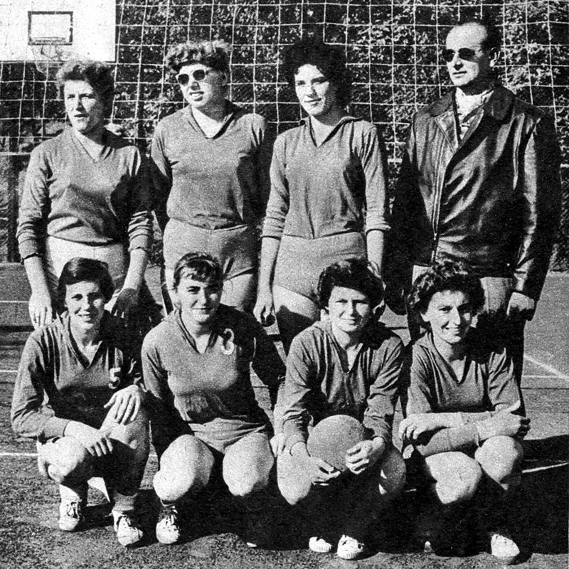 Na dalším snímku mistryně ČSR 1959 z Dynama Slavie Praha. Zleva stojí Neugebauerová-Šormová, Špelinová, Kofroňová a trenér Václav Raban, v podřepu zleva Žižkovská, Vacková-Synovcová, Štulcová-Paclíková a Svobodová-Příhodová. S výjimkou Kofroňové všechny tyto hráčky oblékaly reprezentační dres.