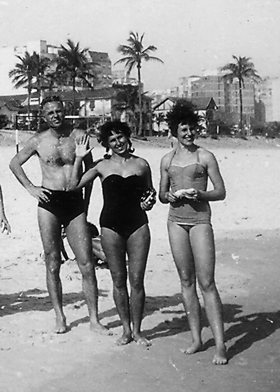 Brazilsky úspěch ještě připomíná snímek ze vzácných chvil volna a oddechu na pláži Copacabana v Rio de Janeiro. Spolu s trenérem Josefem Češpivou uprostřed mávající Hanka Moravcová a napravo Bobina Žižkovská.