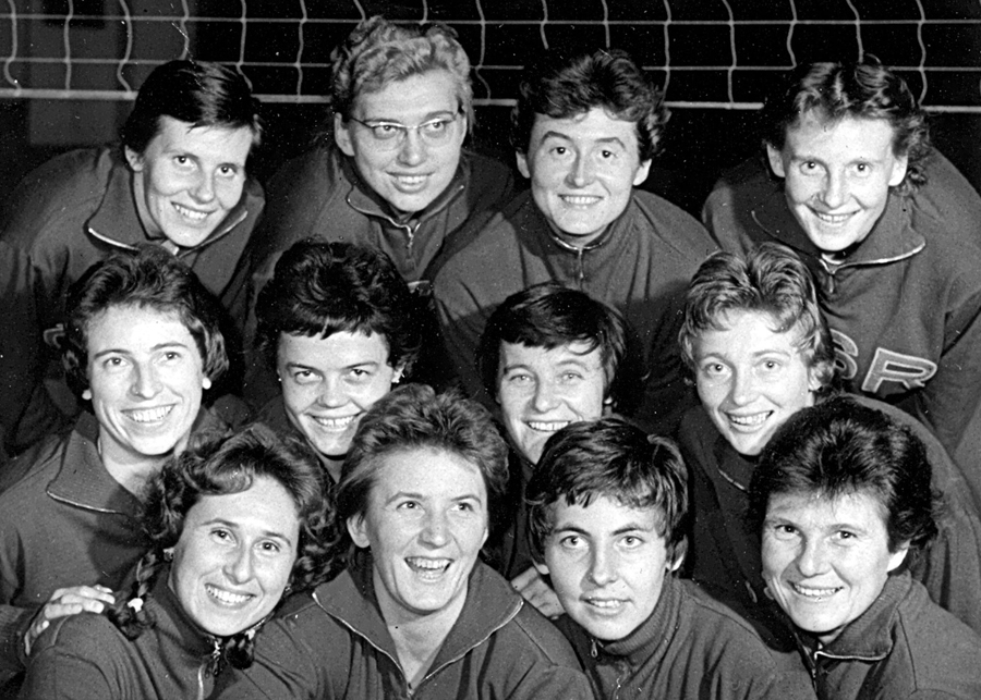Na MS 1960 v Brazílii hrály naše ženy skupinu v Bello Horizonte, kde porazily Peruánky 3:0 a podlehly Sovětkám 0:3, se kterými postoupily do finále, hraného v Rio de Janeiro. Zde porazily Brazílii a Polsko 3:0, USA 3:1 a prohrály s Japonskem 1:3. Finálový zápas SSSR - Japonsko (3:1) řídil náš rozhodčí L. Jebáček. Na snímku bronzové volejbalistky ČSR, v horní řadě zleva Žižkovská, Špelinová, Ulmonová-Benešová a Štaudová-Vráželová, uprostřed Štefflová-Mikulecká, Kyselková-Herěštová, Obadálková a Křížová-Kopová, dole Moravcová, Neugebauerová-Šormová, Holubová a Svozilová.