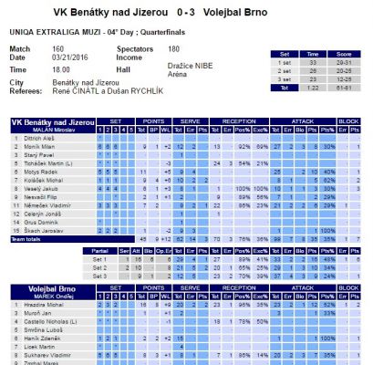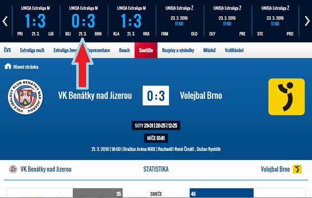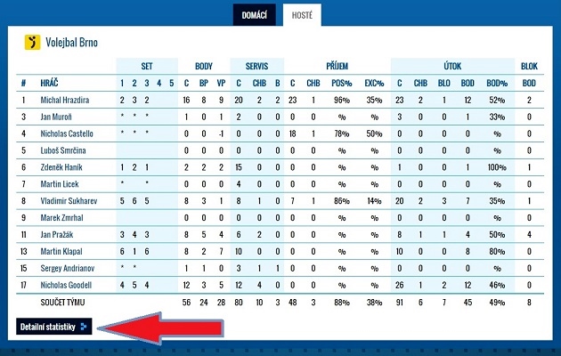 Nové stránky Českého volejbalového svazu stále zdokonalujeme, tentokrát jsme mimo jiné zjednodušili přístup do statistik jednotlivých odehraných zápasů mužské i ženské UNIQA extraligy. Jedním kliknutím na kartě příslušného zápasu naleznete nejen základní bodové a procentuální statistiky jednotlivých hráčů, ale můžete se rovněž podívat na detailní zápasový přehled, přímo ze systému "Data Volley".