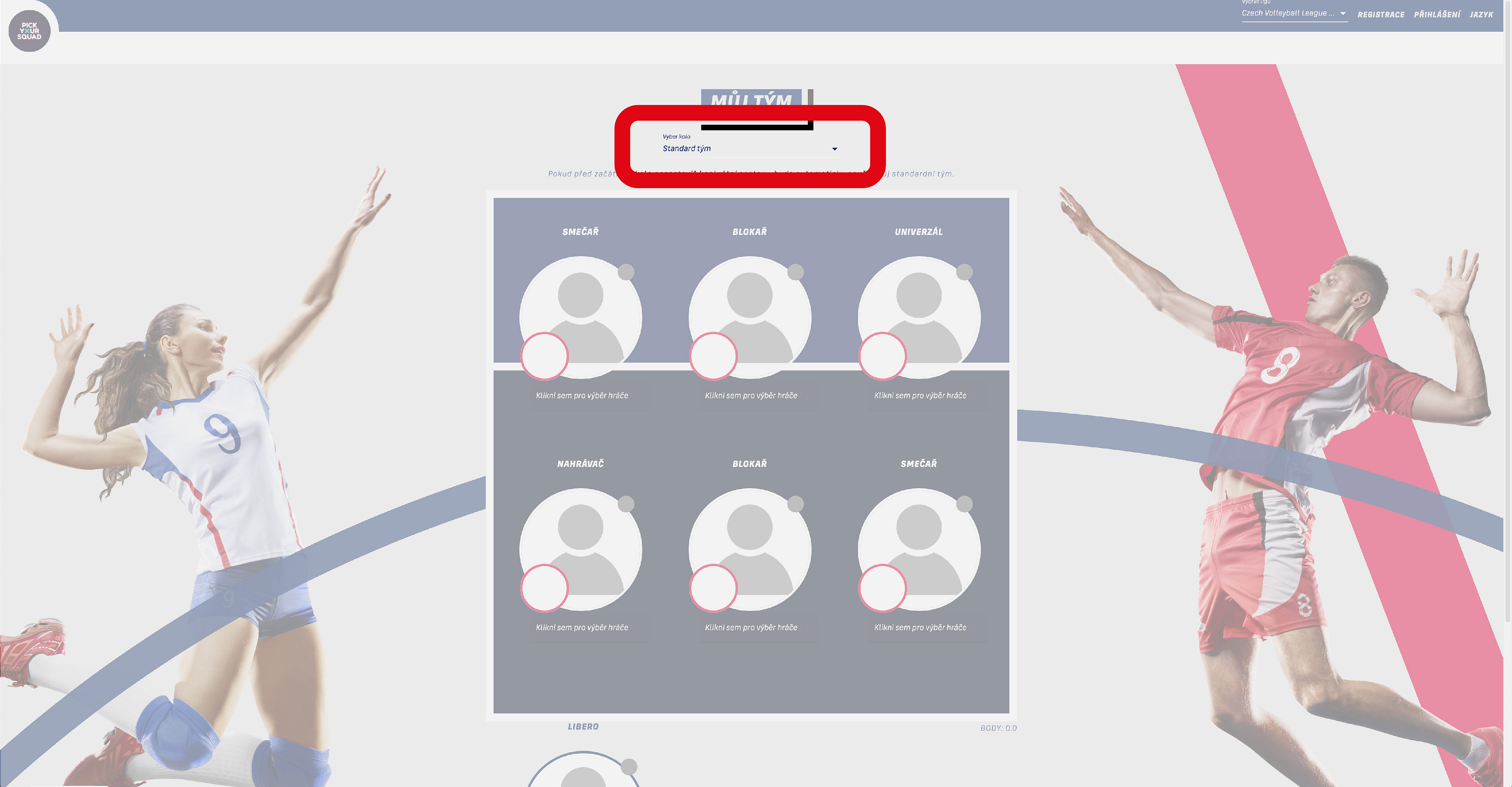 Pokud si vyberete Fantasy ligu, nastavte svůj standardní tým. Ten je zde proto, aby když si zapomenete na aktuální kolo tým nastavit, tak nepřijdete o šanci bodovat a body se vám budou započítávat podle standardního týmu.