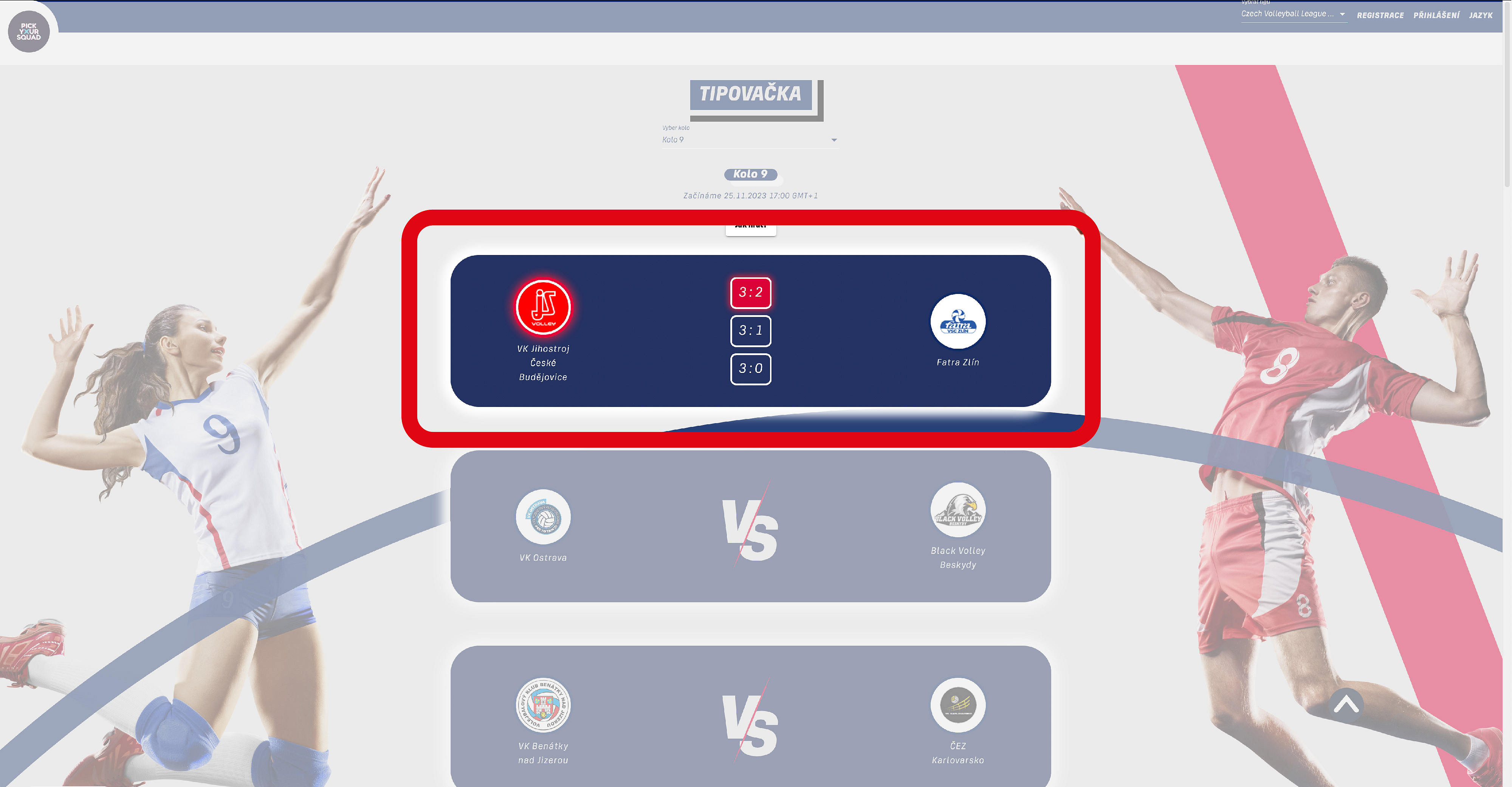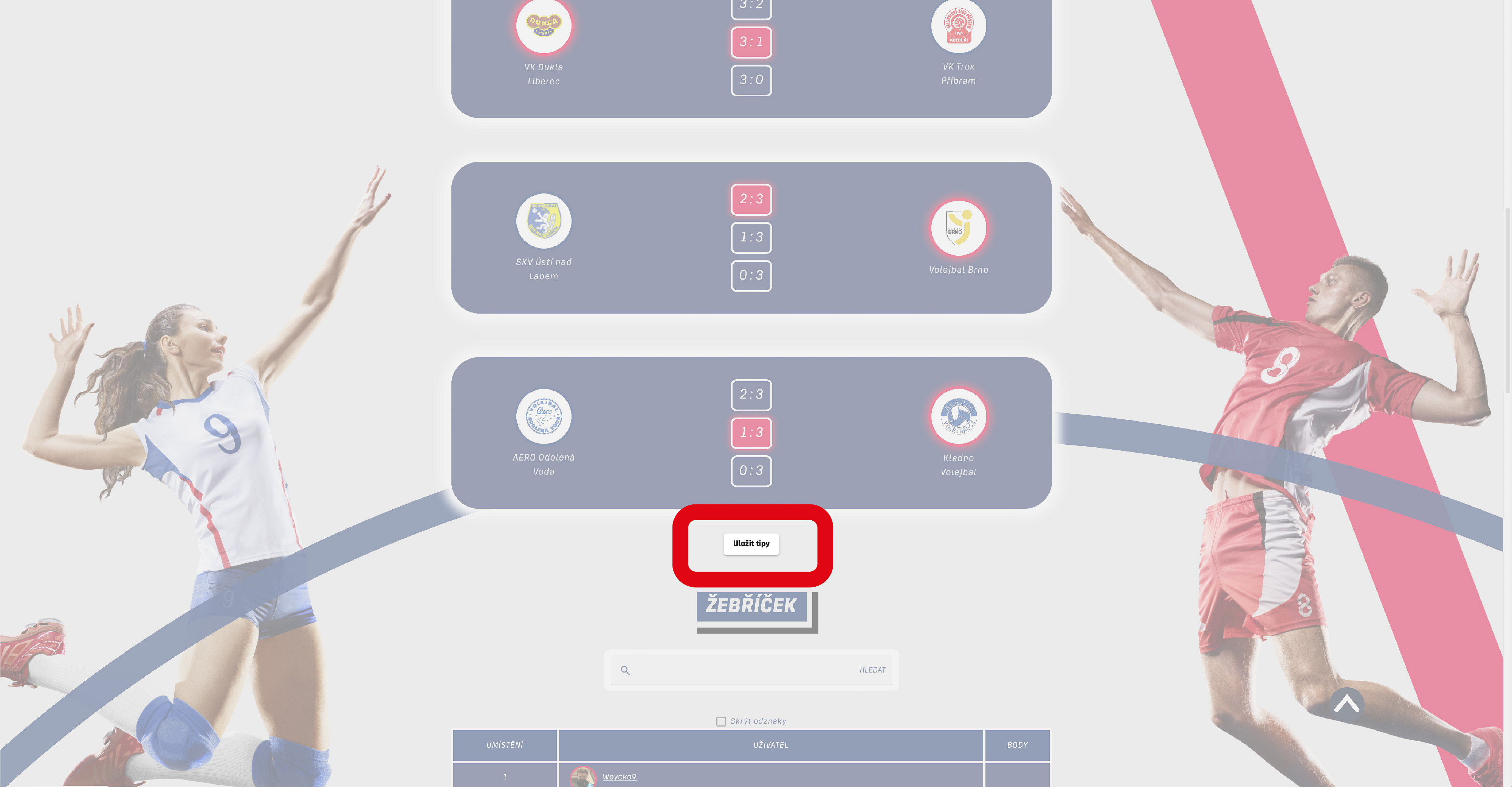 Druhou soutěž, kterou si na Fantasy Czech Volley League můžete zahrát, je klasická "tipovačka". Zde tipujete přesné výsledky zápasů v jednotlivých kolech.