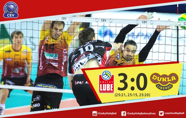 Lube Civitanova - VK Dukla Liberec 3:0 (25:21, 25:15, 25:20)
