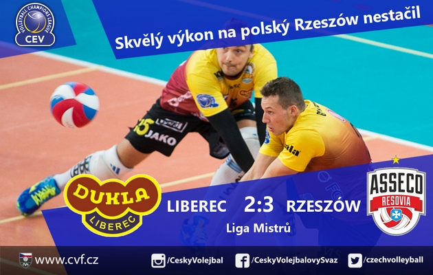 VK Dukla Liberec - Asseco Resovia Rzeszów 2:3 (14:25, 16:25, 25:21, 25:23, 15:17)
