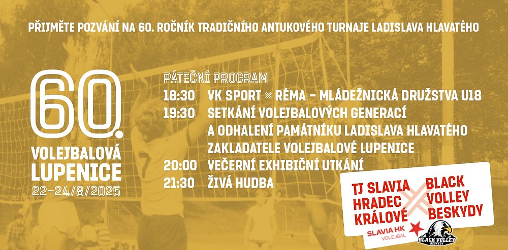 Lupenice se letos v srpnu stane centrem volejbalového dění. V pátek 22. srpna 2025 od 18:30 se na místních kurtech uskuteční slavnostní „Setkání všech generací“ u příležitosti jubilejního 60. ročníku legendárního turnaje. Program zahájí odhalení památníku Ladislava Hlavatého, zakladatele turnaje, který v roce 1965 položil základy sportovní tradice, jež přetrvala desítky let. Ladislav Hlavatý je v obci vnímán jako symbol nezištné práce pro sport a komunitu a památník má připomínat jeho zásluhy i inspirovat budoucí generace. Organizátoři v čele s ředitelem turnaje Michalem Muthsamem zvou všechny hráče, hráčky, legendy i fanoušky, aby se sešli a společně zavzpomínali na historii, která spojovala místní i přespolní.