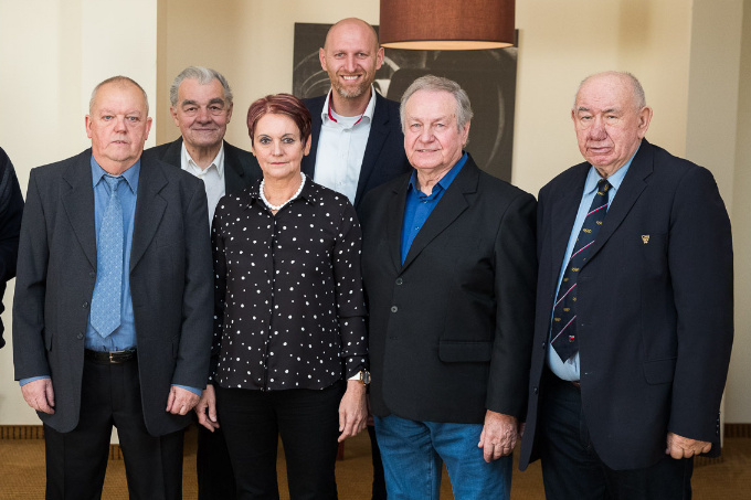 Na druhém snímku pětice jubilantů ČVS, která v červnu 2017 převzala v břevnovském hotelu Pyramida od předsedy svazu Marka Pakosty Medaile Ing. Spirita. Zleva M. Pozděna, V. Tichý, M. Správková, J. Pospíšil a A. Procházka. Z této akce je i snímek v záhlaví, dokumentující předání a převzetí „dekretu“ k udělené medaili.