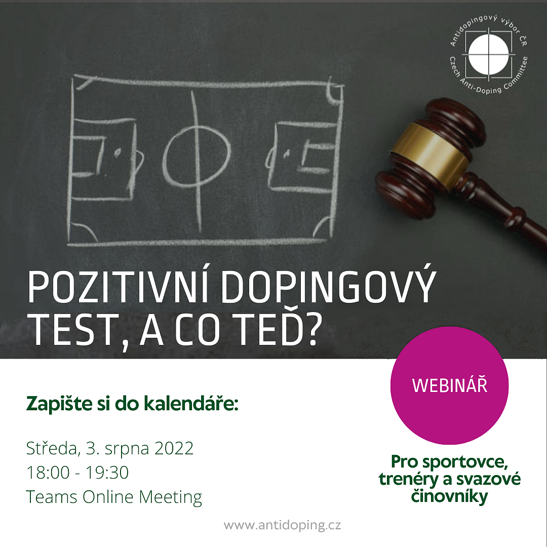 Níže naleznete informace ohledně webináře s názvem ,,Pozitivní dopingový test, a co teď?", který je určen sportovcům, svazovým činovníkům a trenérům.
