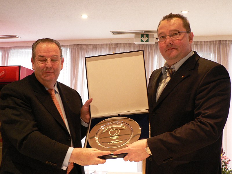 Po prezentaci obdržel p. Lébl - nejen za prezentaci, ale také za celé uspořádání zasedání rady CEV - plaketu CEV. ČVS byl první, kdo dostal plaketu s nový logem CEV.
