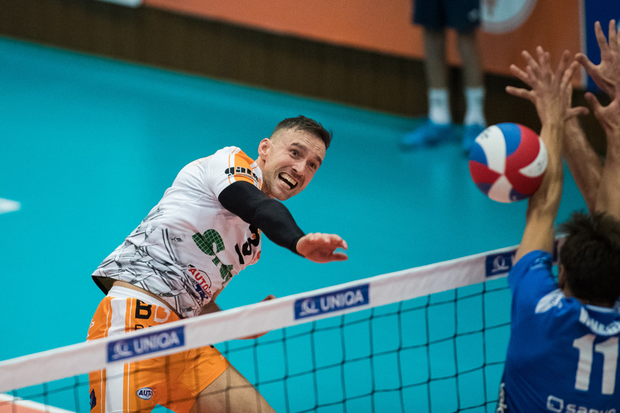 Hosté: Janouch, Skakić, Špulák, Mihajlovič, Paták, Nedejlković, libero Ježek. Střídali: Vodička, Smith, Král, Pliasetskyi, Toman