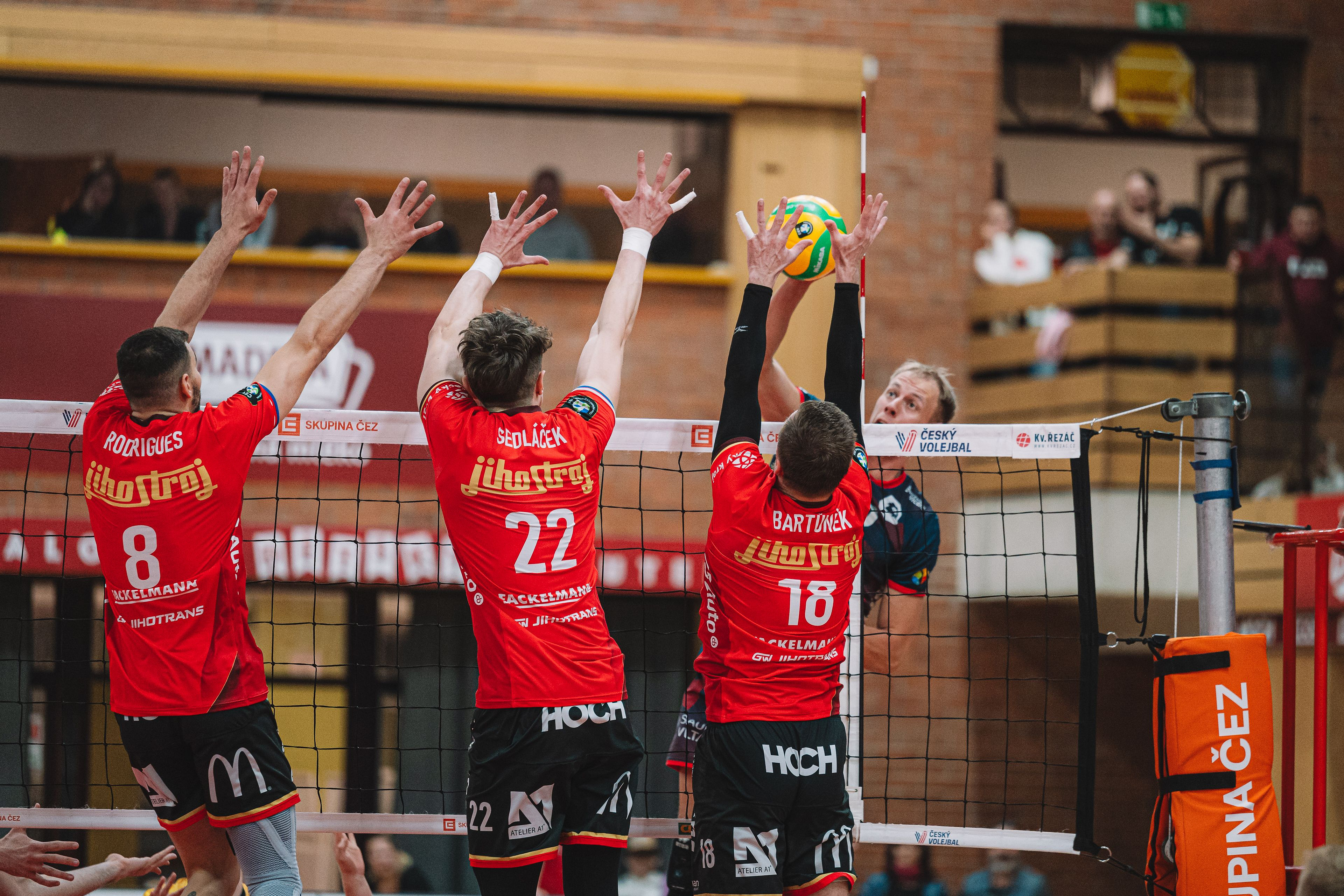 Domácí: Matěj Koranda, Blažo Milic, Ivo Hulpach, Nemanja Peruničic, Jérémie Murray, Jan Kasan, libero Jiří Kořínek. Střídali: Matouš Lank, Tomas Barisic Esteban, Wellington Bolzani, Jiří Capek
