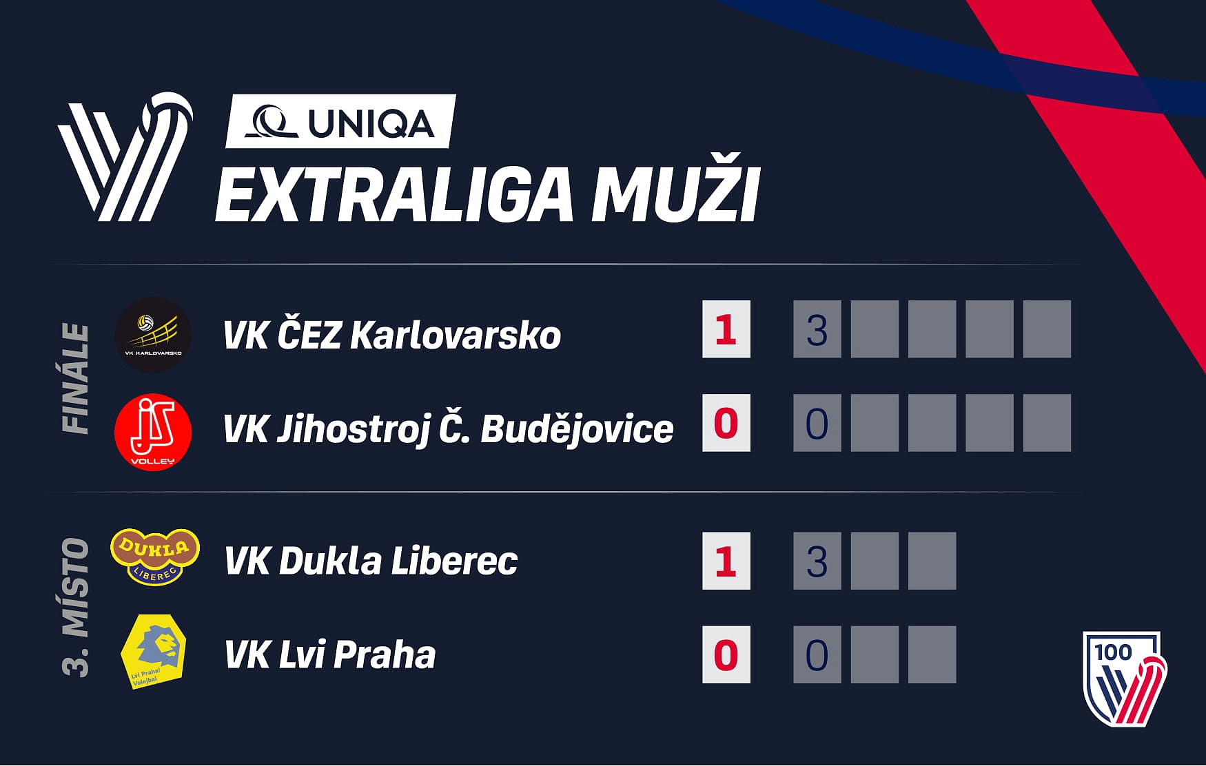 Finálová série UNIQA volejbalové extraligy mužů 2020/21 se v pátek přesune do Českých Budějovic, kde se domácí volejbalisté budou snažit nejen udržet domácí neporazitelnost, ale i vrátit Karlovarsku porážku z prvního finálového duelu. V sobotu pak budou pražští Lvi na své palubovce odvracet „bronzový“ mečbol liberecké Dukly.