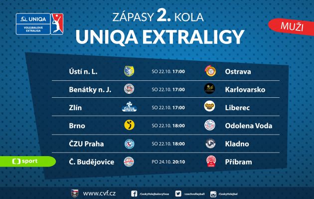 Devíti zápasy pokračuje dnes mužská a ženská UNIQA extraliga ročníku 2016/2017. V mužské části české nejvyšší soutěže přivítají Benátky ve své sportovní hale tým Karlovarska, mistrovský Liberec se představí ve Zlíně, Brno změří síly s Odolenou Vodou a pražské ČZU si zahraje v zajímavém duelu s nedalekým Kladnem. Nevyzpytatelný duel se může odehrát i na severu Čech, kde posílené Ústí přivítá Ostravu. V ženské části UNIQA extraligy se odehrají tyto duely: Fénix - Šternberk, Olomouc - Frýdek-Místek, Olymp - Prostějov a Ostrava - Přerov. Všechna utkání můžete sledovat ŽIVĚ prostřednictvím internetových svazových přenosů TV Com - ZDE, výsledkový "live" servis poběží tradičně na stránkách cvf.cz.