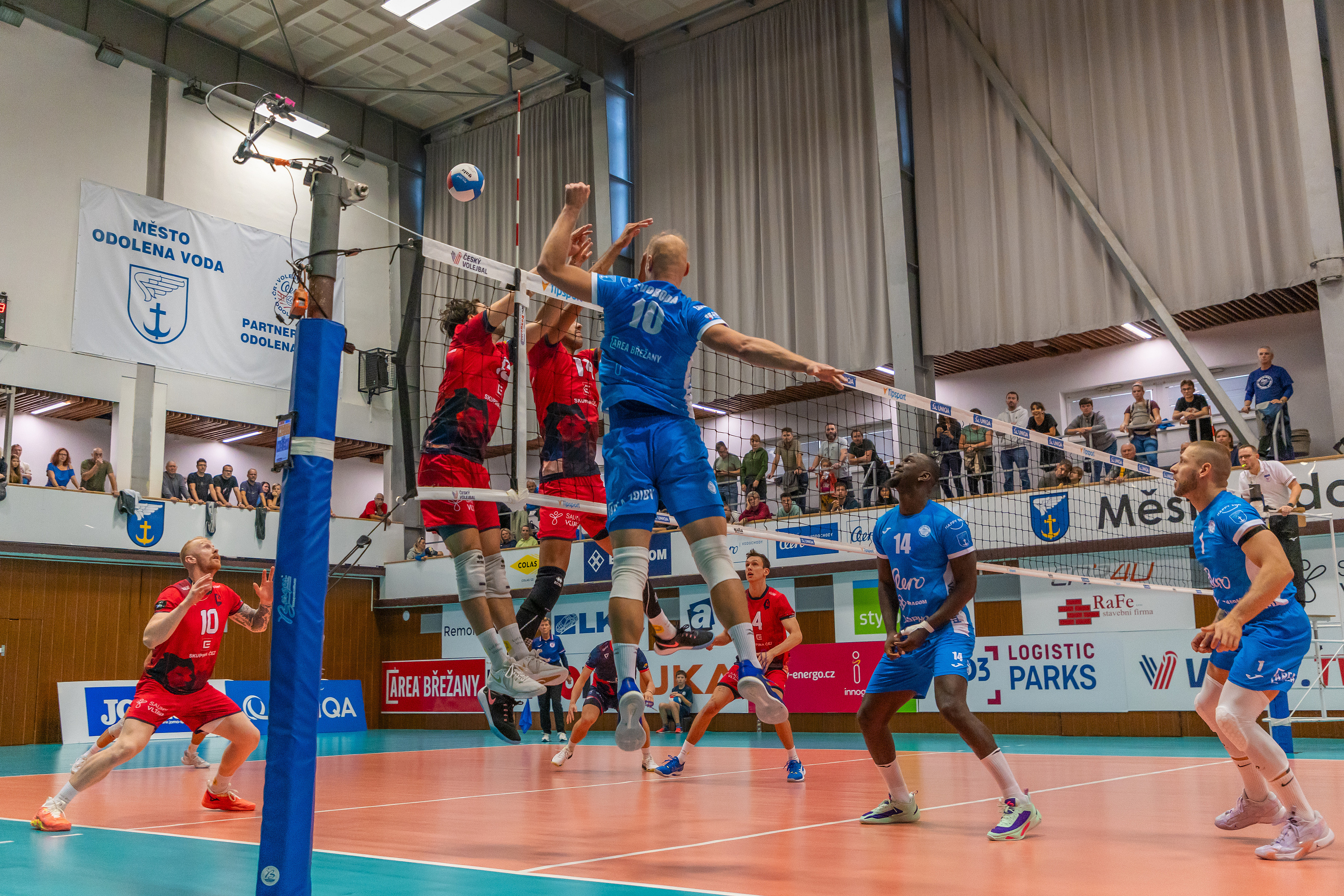 V zápase 2. kola volejbalové extraligy mužů se střetlo domácí AERO Odolena Voda s úřadujícím mistrem VK Lvi Praha. Do poloviny prvního setu byli vepředu ve skóre domácí, ale pak se kormidlo zápasu otočilo na stranu Lvů. Až třetí set byl znovu vyrovnaný a domácí volejbalisté si vybojovali dvě šance k ukončení setu, ale Lvi třemi bloky v řadě dotáhli zápas k vítězství.