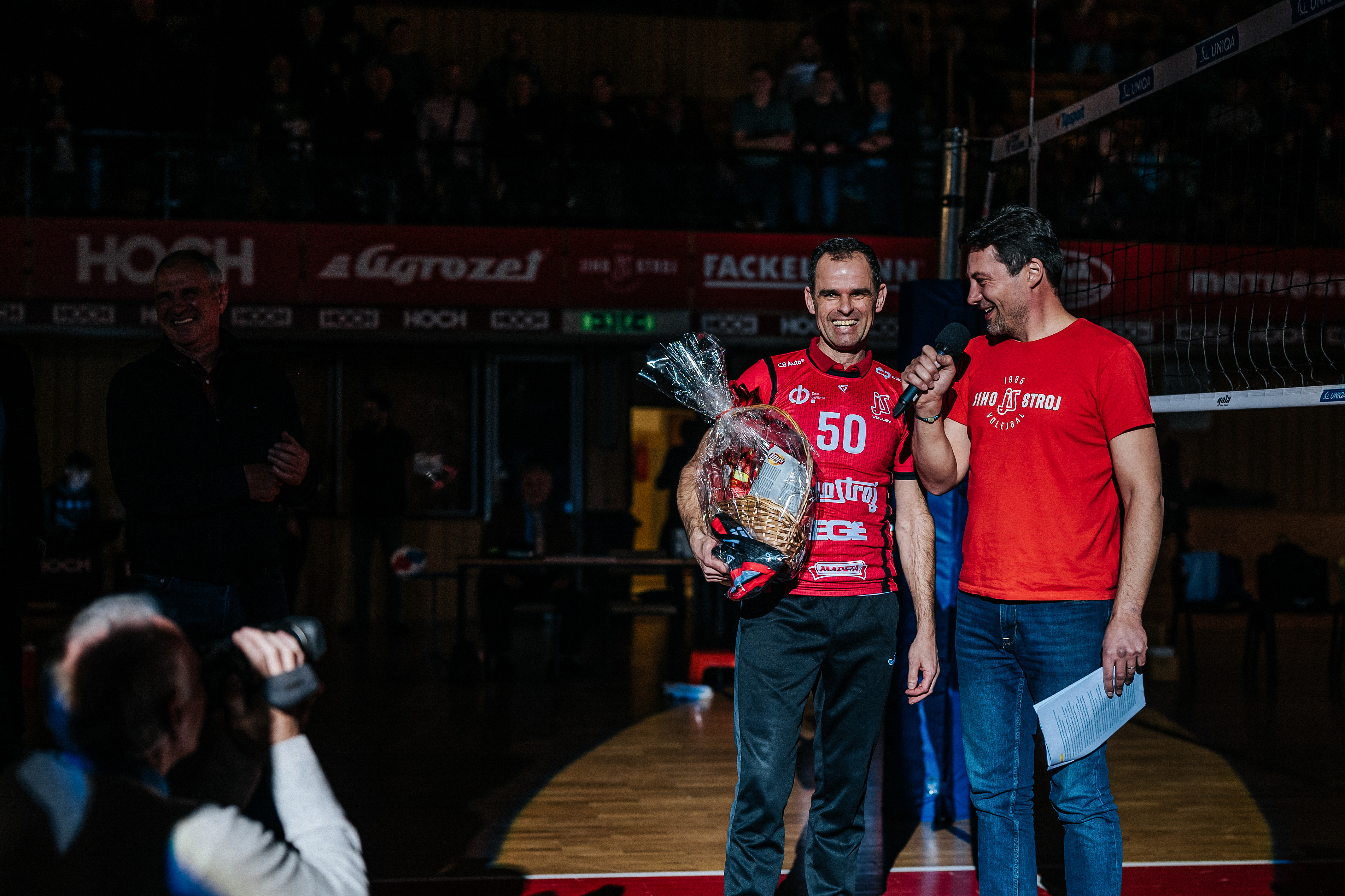 Na úvod zápasu si domácí tým připravil překvapení pro svého maséra Filipa Hocha alias Křápu, který nedávno oslavil 50. narozeniny a 25 let v klubu. Moderátor při představování základní sestavy Jihostroje vyvolal nic netušícího Filipa Hocha, který po počátečním šoku přebral dres s číslem 50 od trenéra Zacha a vrhl se na palubovku. Po první symbolické výměně Hoch vystřídal za Sedláčka a šlo se na ostrý zápas.