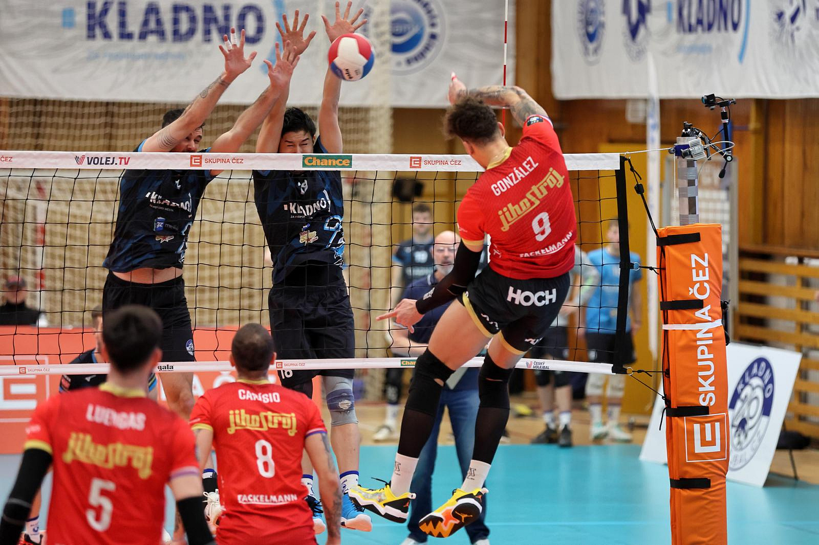 Kladnu úvod zápasu vůbec nevyšel a rychle prohrávalo 4:1. Arnaud Josserand chtěl zabránit dalšímu tlaku Jihostroje a raději přerušil zápas time-outem. Orly decimoval zejména kubánský univerzál Rodriguez, bohužel obvyklou oporu Platačse Budějovice kompletně vymazaly. Kladno dokázalo i přesto soupeře dotáhnout na 12:14. V tu chvíli byla hra kvůli spornému challengi Kladna na dlouho přerušena, což domácím uškodilo, navíc o míč nakonec přišli a náskok Budějovic dále rostl. I když stav v koncovce ještě družstvo kapitána Zajíčka korigovalo, hosty již neznejistělo.