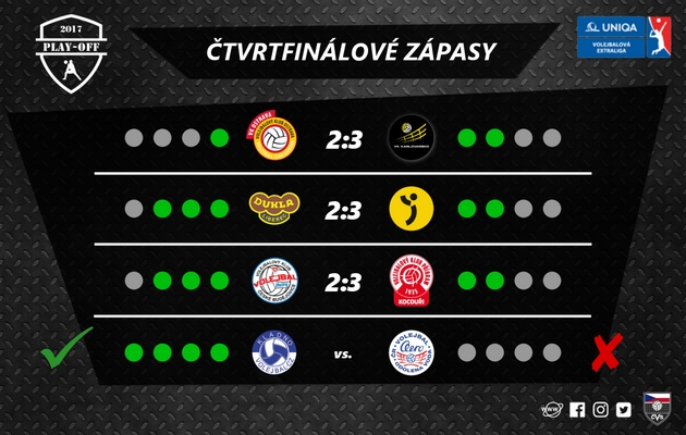 První kolo play off v nejvyšší české volejbalové soutěži UNIQA Extraliga, ve kterém nastoupili proti sobě po základní části sedmý tým domácí VK Ostrava, s.r.o. a druhý tým hosté VK ČEZ Karlovarsko. Utkání plné zvratů, ve druhém setu zranění Michala Kriška, zajímavých momentů a vítězného konce pro hosty.